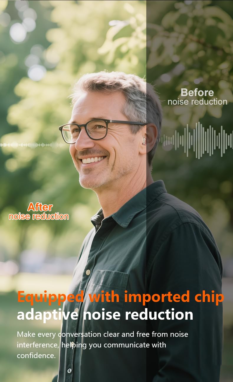 【Clear Communication Made Easier】 The hearing amplifier employs advanced digital processing technology for high-fidelity sound quality. It intelligently identifies and optimizes human voices, powered by a balanced armature driver to support speech clarity. Effectively minimizes ambient background noise interference, elevating the conversation experience.
